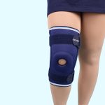 - Виріб помірної жорсткості фіксує коліно, знімає навантаження з зв’язок.